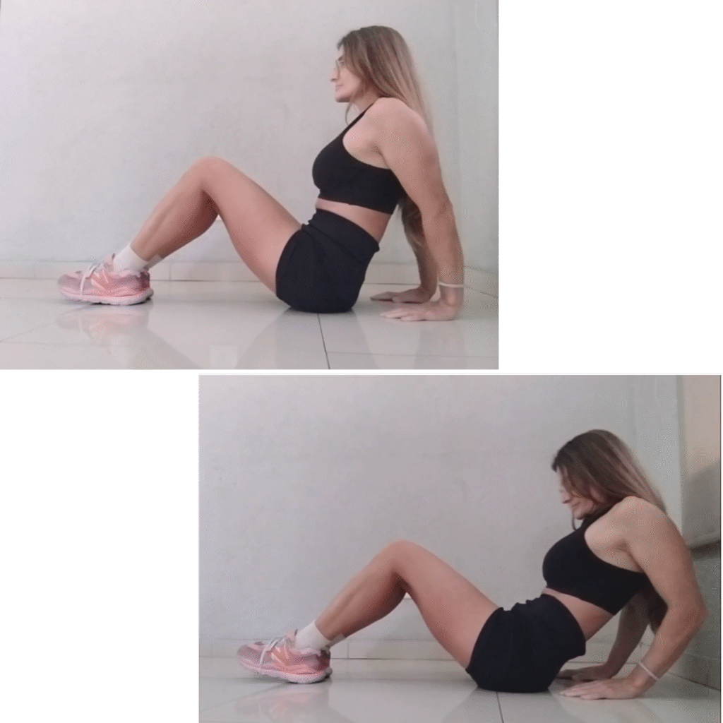 Igual que el paso anterior, pero ahora extendé las piernas al frente.